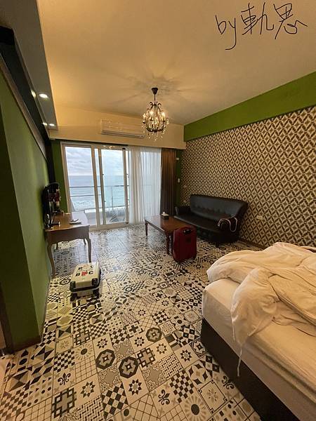 站在房內往落地窗看也是美景無限!民宿內能擺東西的桌面好多 我很滿意哈哈